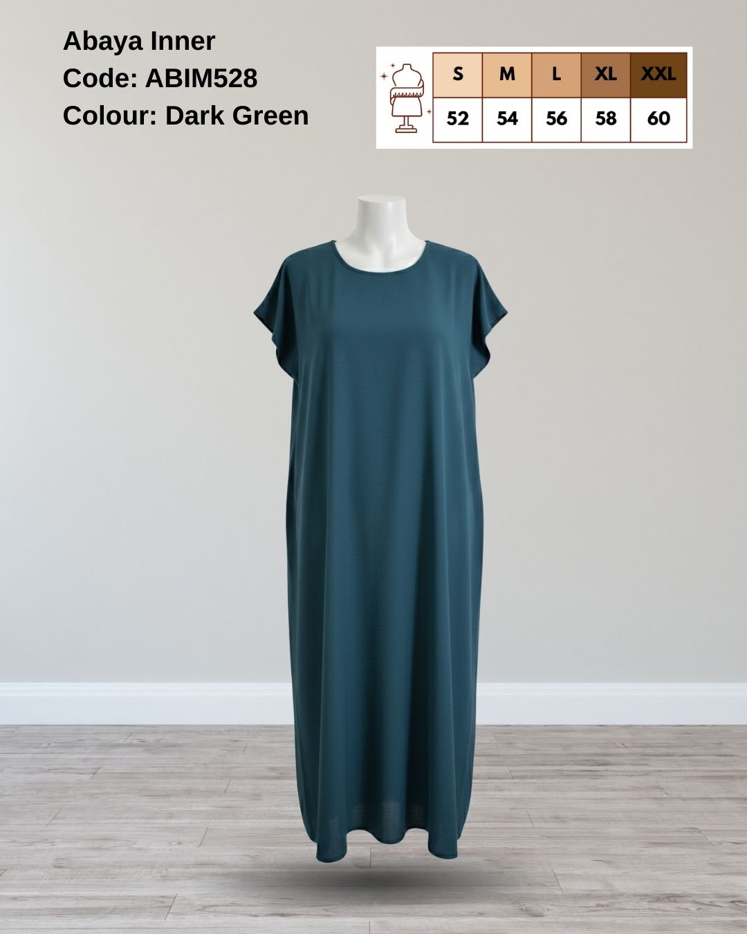• ABIM528 Dark Green Premium CEY Fabric Basic Inner Slip for Abaya Long Dress