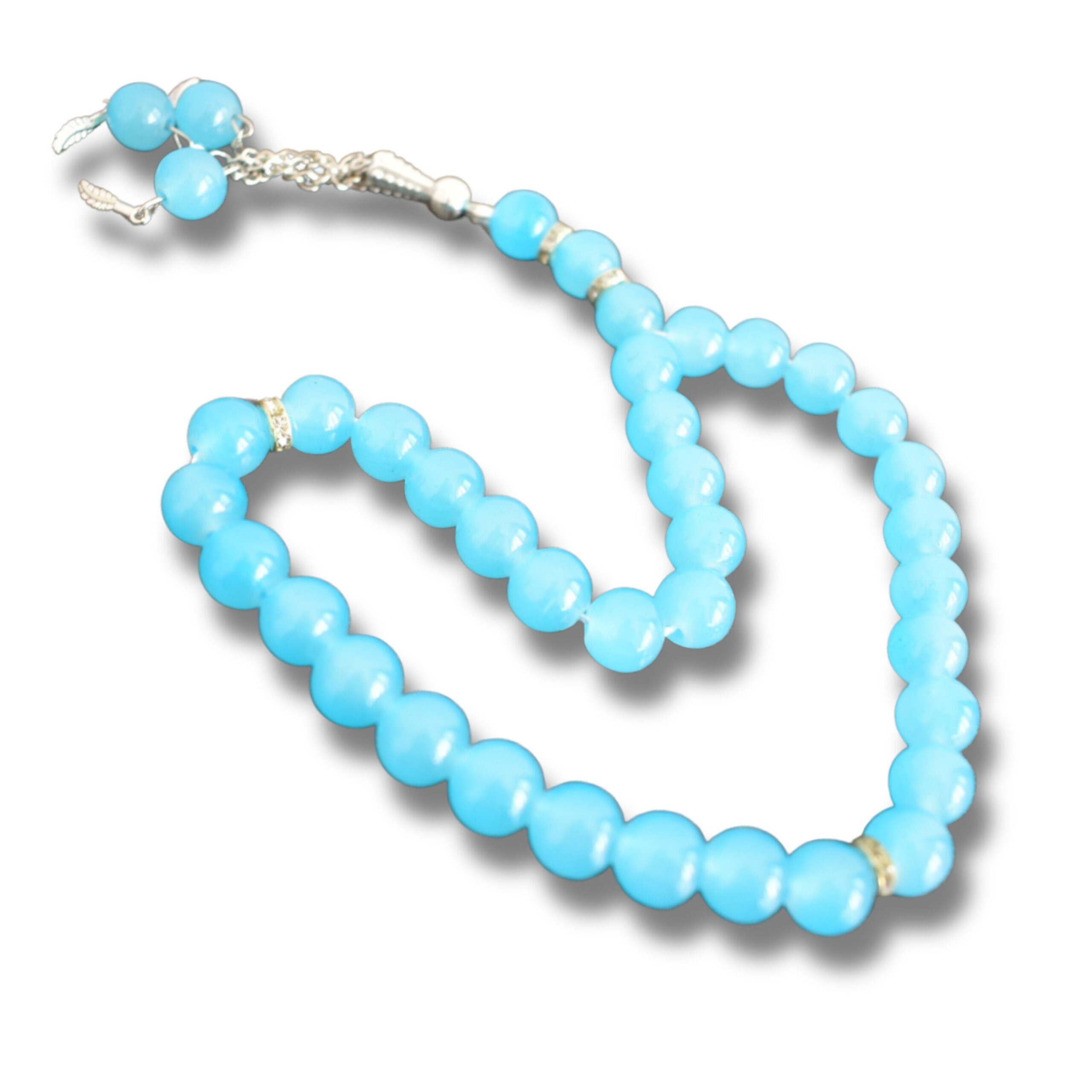• Aqua Blue Stone Tasbih 33 Bead Islamic Prayer Beads, 8mm Natural Stone Misbaha with Decorative Tassel, 19cm Dhikr Tasbeeh Counter Muslim Gift