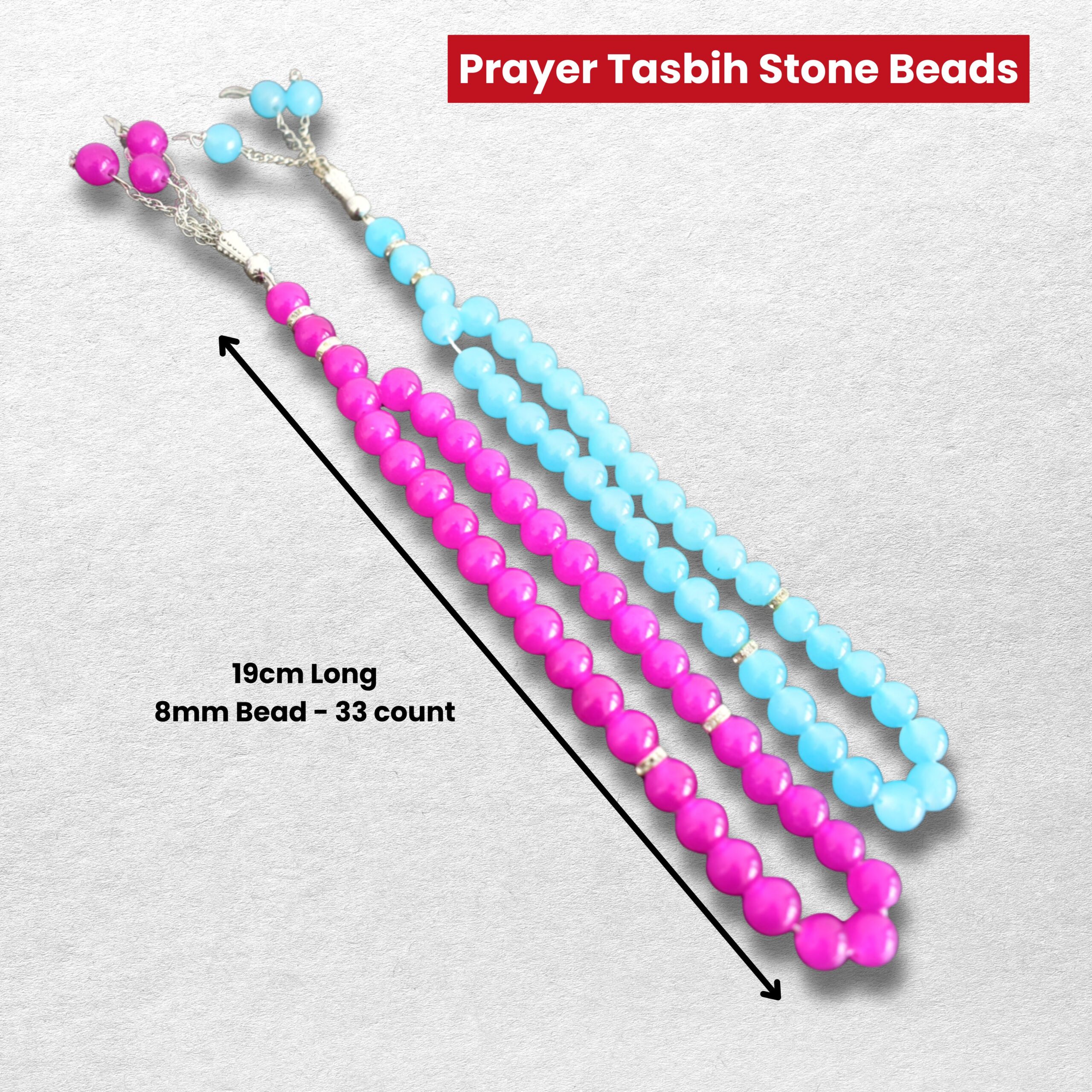Measuring 16cm in length, the tasbih includes a refined silver-tone accent and a decorative tassel, bringing a touch of sophistication to its traditional design. Ideal for daily prayers, meditation, and Islamic recitation, the beads glide effortlessly through the fingers, making your spiritual practice more focused and serene.