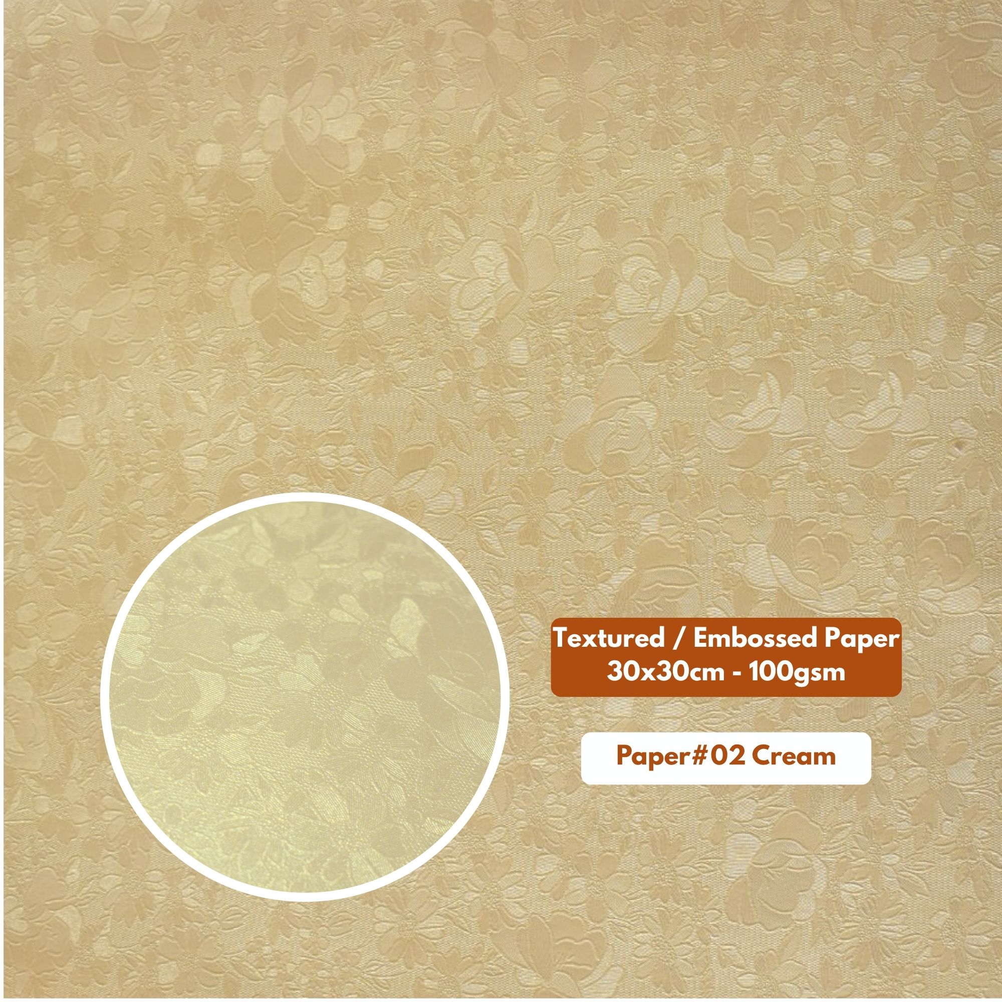 • Paper#02 CREAM Textured Embossed Paper 30x30cm 100gsm 10 sheets Invitations Wrap Chocolate Scrapbooking DIY Craft