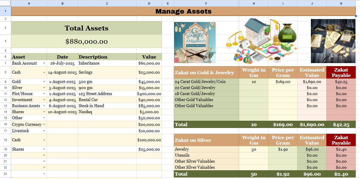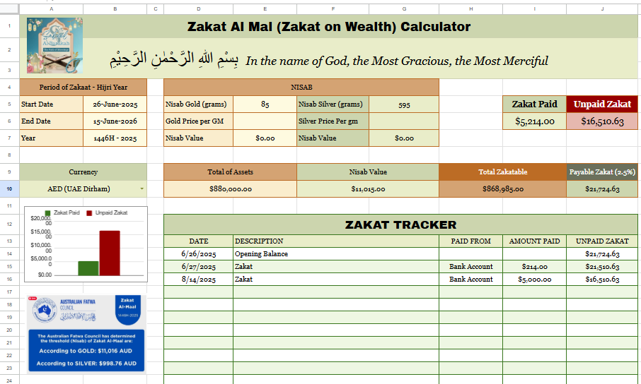 π°β¨ Simplify Your Zakat β Zakat Calculator Google Sheets Template Calculate, Track & Stay Organized
