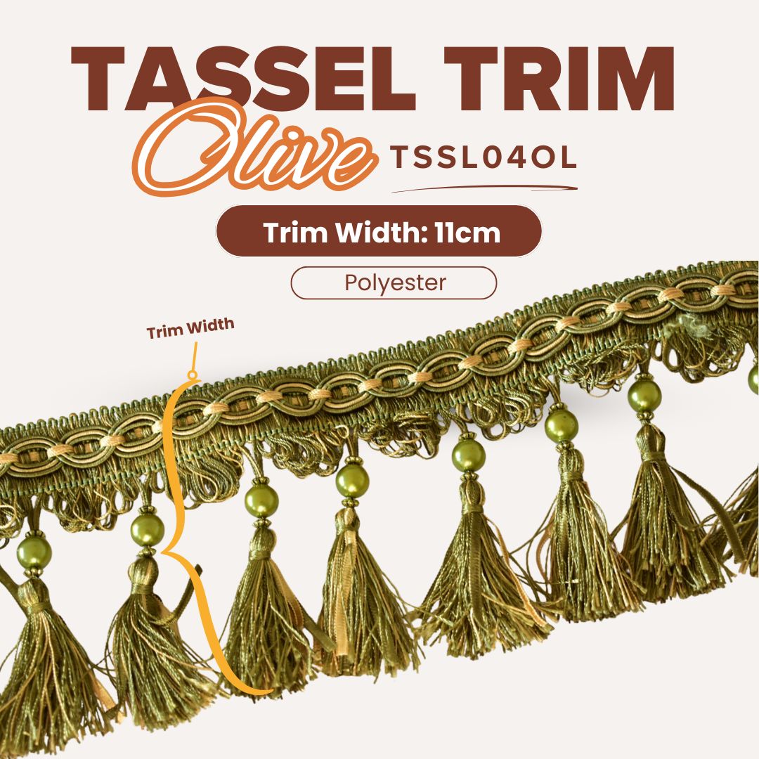 • TSSL04 One meter OLIVE 11cm Wide Tassel Bead Hanging Fringe Trim Lace Curtain DIY