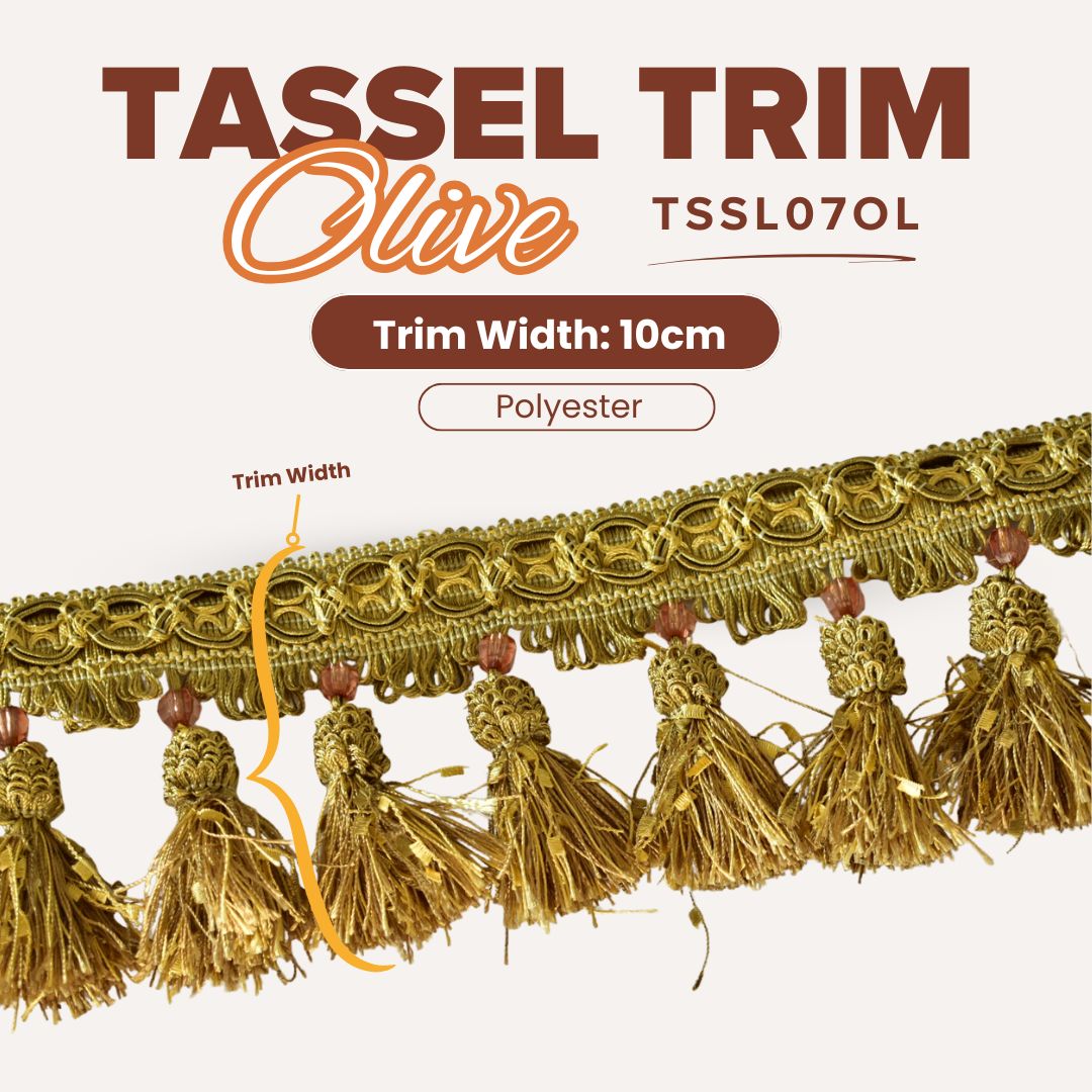 • TSSL07 One meter OLIVE 10cm Wide Tassel Bead Hanging Fringe Trim Lace Curtain DIY